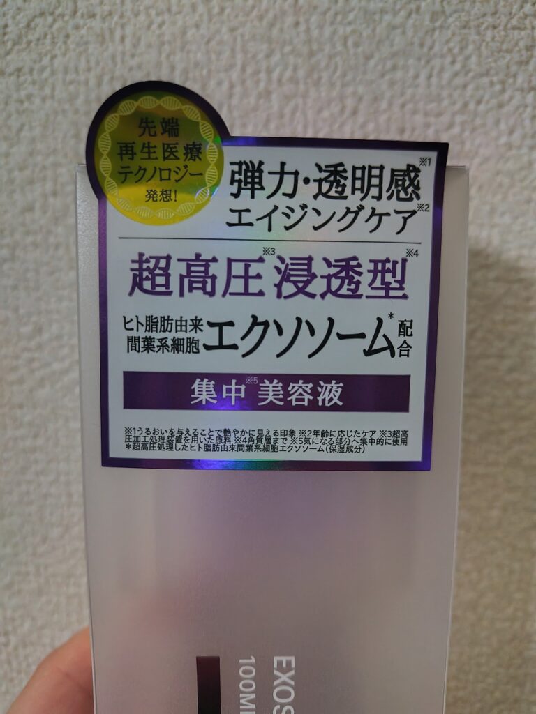 ヒト脂肪由来間葉系細胞エクソーム配合”と表記されている