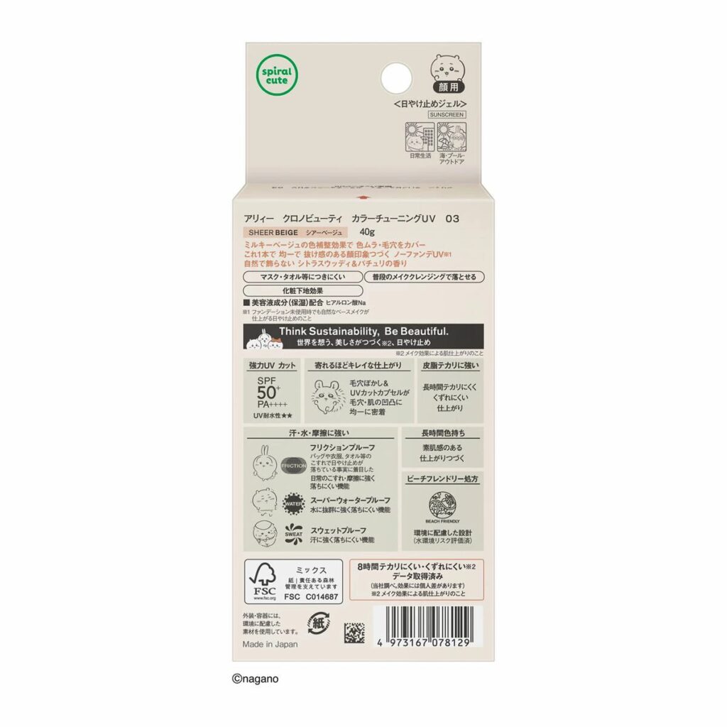 【レビュー】アリィー【クロノビューティーカラーチューニングUV03】シアーベージュ【ちいかわコラボ】