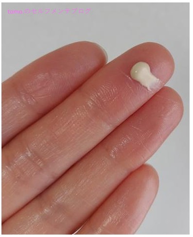 適量直径1.2cm程。私は米粒程度を数回に分けたものを中指に出してポンポンと置いてなじませています。